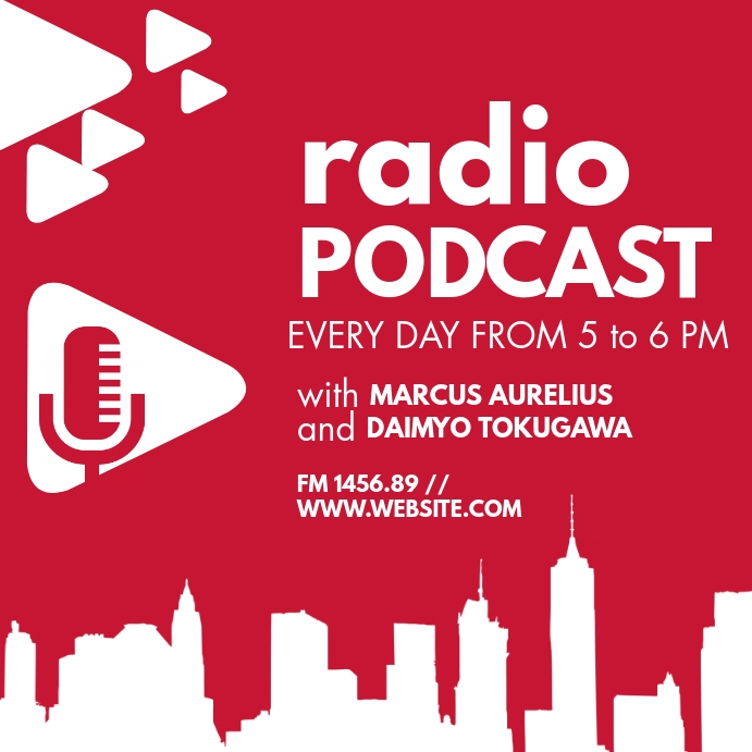 Radio Podcast Interview Red And White Minimal Template Postermywall